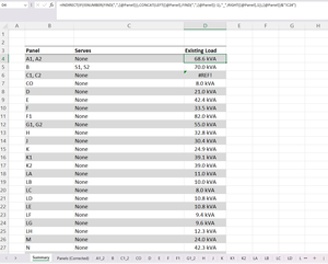 I am writing a formula to reference a value on another sheet and running into an error I can't explain. The workbook has several dozen sheets, each describing the electrical loads on one of the b...