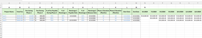 That's a start. I also said we could use a clear description. At this point, you're in effect asking us to reverse engineer the numbers you show off to the right. Again, you could help us help you if you explain the why behind this schedule; it may seem obvious to you, but even such terminology as "retainage"--which isn't even a word--could be explained; the difference between retainage 1 and retainage 2. While you're at it, all of the dates off on the right are the first of the month, but the dates in the first thirteen columns are all the 15th of their respective months.