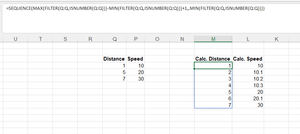 Hi, Suppose I have a train that's driving away from a train station, and I've measured the speed at a certain distances from the station (in this case 1,5 and 7, but it could be any number of distan...