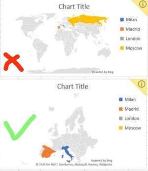 Hello everyone, I'm trying to add a map chart to my Excel report. I only have data for the locations listed below, but Excel is showing me all countries on the graph. That's why countries that inclu...