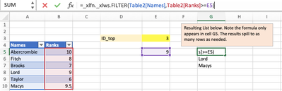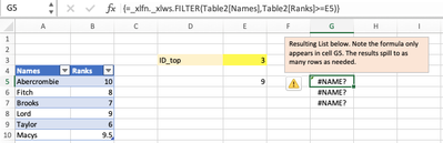 FILTER function on Excel for Mac