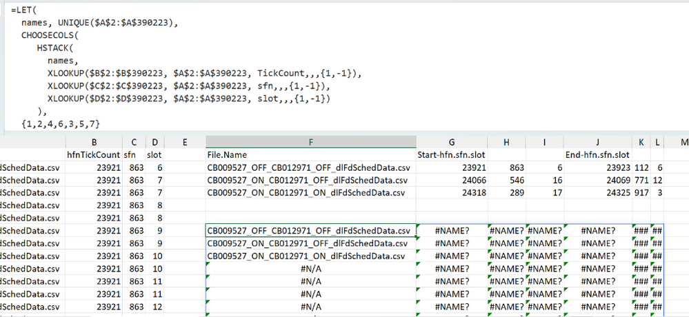 Dear Experts,                    I have a Data like this:-   Column A -> Has the File Names, and Column B,C,D have their corresponding data, In Column F I have the unique File Names and from G/H/I...