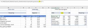 Hi, The goal here is to select the oprator from a list. So the filter function change if the selection is < > <= >= from cell reference Function =FILTER(Tabell1;INDEX(Tabell1;;XMATCH(S4;...