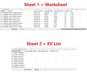 I also managed to use VLOOKUP to return the values in "Worksheet" to the relevant reference in "EV List".