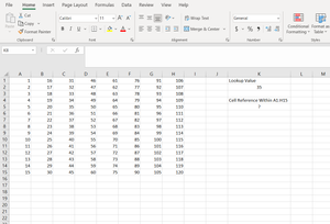 I'm looking to input a value in a cell and have a formula find the cell reference of that value within a table. Here is a screenshot to show what I mean.