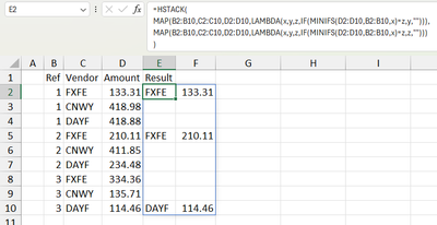 Hello, I am looking to have excel return the results of the least cost option from reference number 1, then 2 then 3 etc.. We are trying to get optimal results using multiple vendors.