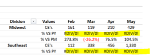 Hi - I used the 'show values as' option within the data set of the pivot and now I get DIV errors that I don't know how to error out. Normally, I would write IFERROR formula but not sure how to do it...