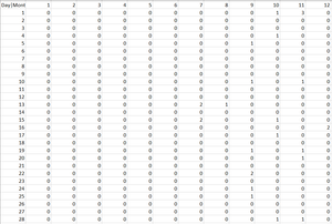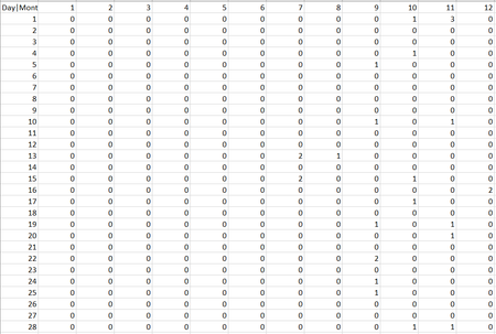 Social Media Posts Analysis: I have a tabular columns on excel with days (1-31) in columns and the months (1-12) in rows, which looks like this: The data to this feeds from another shee...