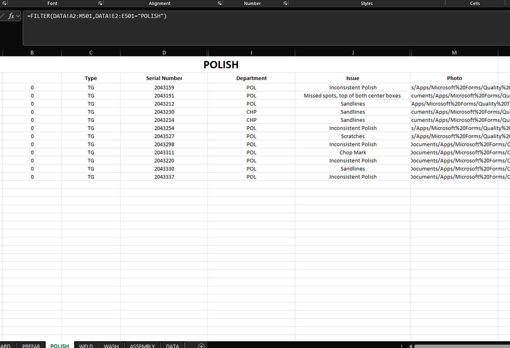 What I was hoping to accomplish was that each Supervisor can view the sheet and review the Quality concerns that pertain to them and the departments they oversee. With that if a photo is attached from Forms then the =Filter function will not be clickable.