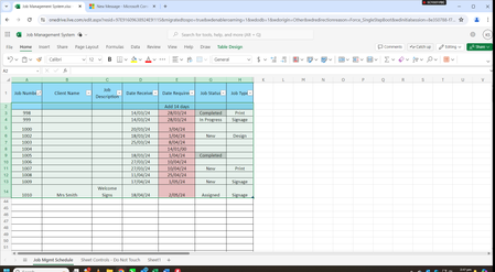 This adjusted formula should work within the limitations of Excel Online and still achieve the desired result of highlighting cells within 2 days of the Date Required date, unless the corresponding Job Status cell contains the word "Completed".
