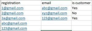 Hi Friends, I want the value of "Is Customer" column not change "email" column. For instance, email column looks up in registration, and if that email exists in "registration" column, t...