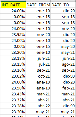 Buenas tardes, Agradezco su colaboración encontrando alguna formula que me permita encontrar la siguiente situación: Tengo una base de unos registros con una tasa de interés que se aplicaron a...