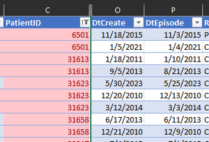 Hello! I needed assistance with a formula that will be a "yes or no" in column A, that will determine if the dtcreate (column o) within each group of patient IDs is within 28 days of each other. ...