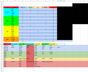 This might be complicated as I'm not extremely familiar with excel. I would like to create a formula that can find a name from the bottom table and depending on which section it is in (cleanup / setu...
