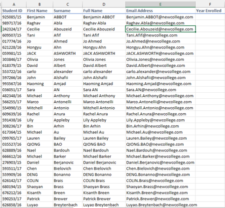 The last two digits of the student number indicate the year the student enrolled. In F4 create a formula that will put "20" followed by the last two digits of the Student ID, e.g. 2015. Copy the form...