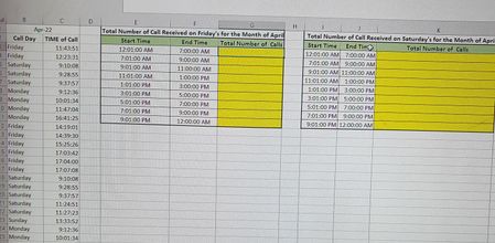 Hi Wonderful Smart Excel people ๐ This problem is doing my head in and I hope someone out there can help!! So, I'm looking for a formula to calculate how many telephone calls were received on a Fr...