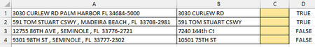 I am hoping someone can help me with a formula in Column C that looks in column A to see if the text in column B is there... and return a value of True/Yes or False/No. The results for the below dat...