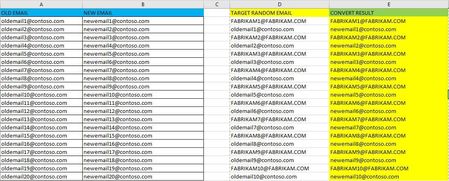 FORMULA TO CONVERT LIST OF OLD EMAIL TO NEW EMAIL