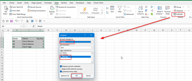 = LET( distinct, UNIQUE(HSTACK(Week,Clients)), wk, TAKE(distinct,,1), client, TAKE(distinct,,-1), subtotals, SUMIFS(QtyBuy, Clients, client, Week, wk), result, HSTACK(distinct, subtotals), VSTACK(header, result) )- NathanRodriguesCopper Contributorsure, thank y'all, but i just want to do this in filter formula, is that possible? because i don't know how to use VBA in excel yet
