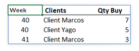 Week / Clients /Qty Buy