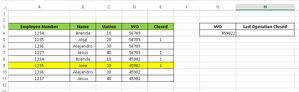 Hello, Could you help me with this? I need a formula that looks for the WO then looks for the largest station that has a "1" in the closed column and the result should be that largest station...