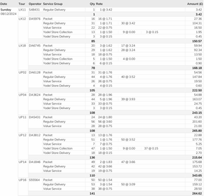Since Dates and Tour Codes only appear once per section in the original PDF, they need to be repeated for every row.