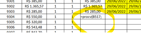 Função PROCV não executa
