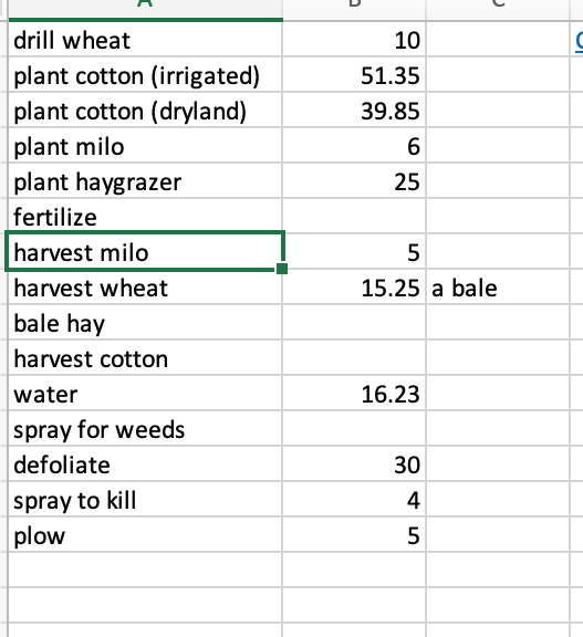 Trying to make a spreadsheet for costs breakdowns. I have all of the business expenses and how much they each cost but I want to be able to type the task name into a column and it auto formulate how much the total expense was. For instance, it cost $3/acre to plow a field. I click on the spreadsheet with a 100 acre field, I want to go to that field data and type "plow" in a column and in the next column it auto calculate =3*100, without me having to do the formula. I just want to type "plow" and it automatically calculate. So then I would see that specific task cost $300 and at the end of the year I can see the total expenses I put in.