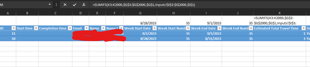 =SUMIFS(K$3:K$2001,$G$3:$G$2001,">="&$G$1,$I$3:$I$2001,"<="&$I$1)=SUMIFS( [range to be summed], [range of start dates],">="&[start date desired], [range of end dates],"<="&[end date desired]).