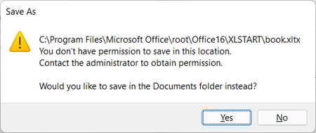 Getting this error while saving a template in XLStart
