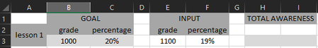 Greetings, I am trying to do the following on the table below; A student has two goals in each lesson. Goal one is a number (grade) and the other goal is a percentage. A user can type in cel...