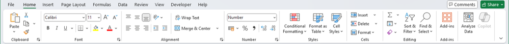 This is the ribbon in the desktop version of Excel (in Microsoft 365):