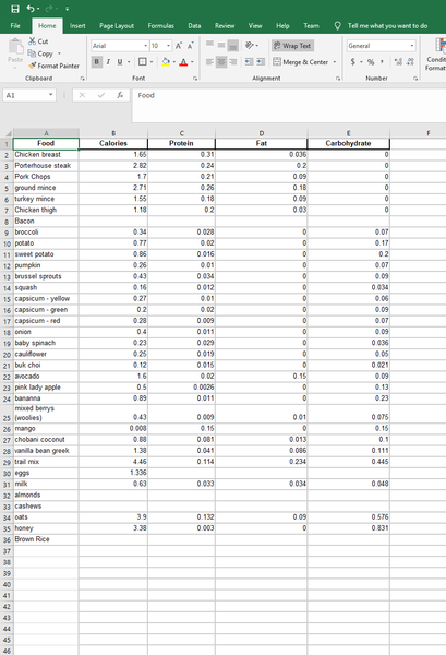 I've tried using your formula however I can only seem to get it to use the data from the calories column even when the formula has been dragged into the other cells.