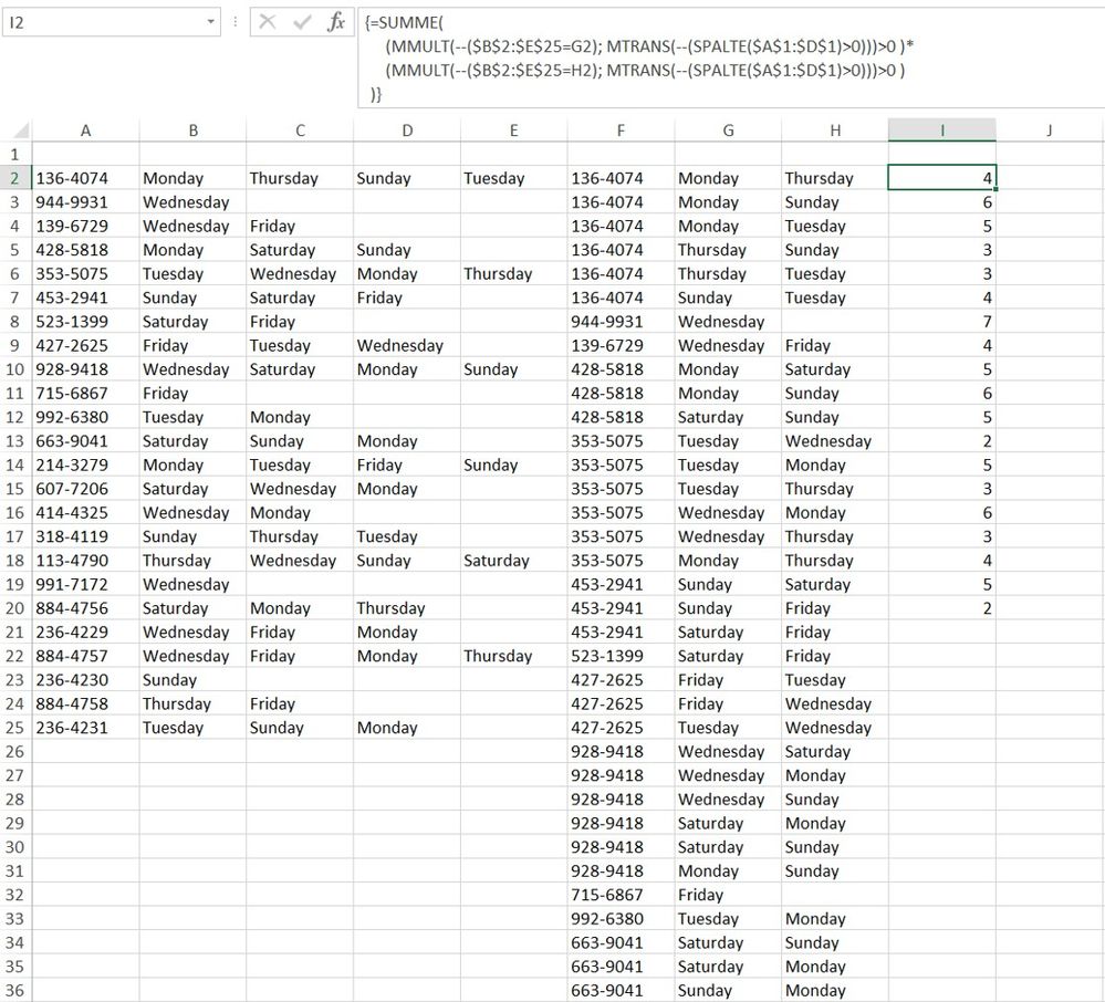 =SUM( (MMULT(--($B$2:$E$25=G3), TRANSPOSE(--(COLUMN($A$1:$D$1)>0)))>0 )* (MMULT(--($B$2:$E$25=H3), TRANSPOSE(--(COLUMN($A$1:$D$1)>0)))>0 ) )