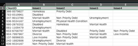 Good day wonderful people, I am trying to create a matrix table that shows correlations between types of issues people may be worrying about. The end result is to enable me to bring it into Power BI...