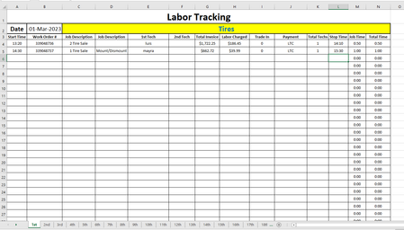 An observation, first: you are in the process of creating a workbook with one tab per day per month, with the purpose of labor tracking. I'm not sure exactly what you mean by "labor tracking," but will make the assumption that you want to know which person(s) worked on each job and how much was charged for that labor, and be able to summarize that for various pay and supervisory/management purposes.