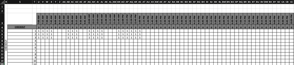 Basically, If I have numerous people on shiftI need the time blocks to show where I have shortfalls in shift cover and not having too many people on break at the same time.