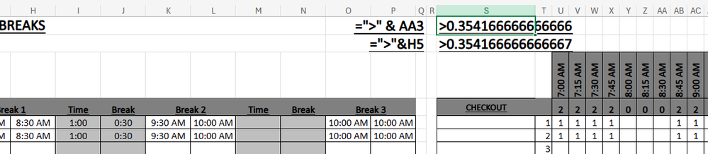 as you can see the 8:30 AM in cell H5 is rounded up to ....7 while the 8:30 AM in cell AA3 is truncated at ....6