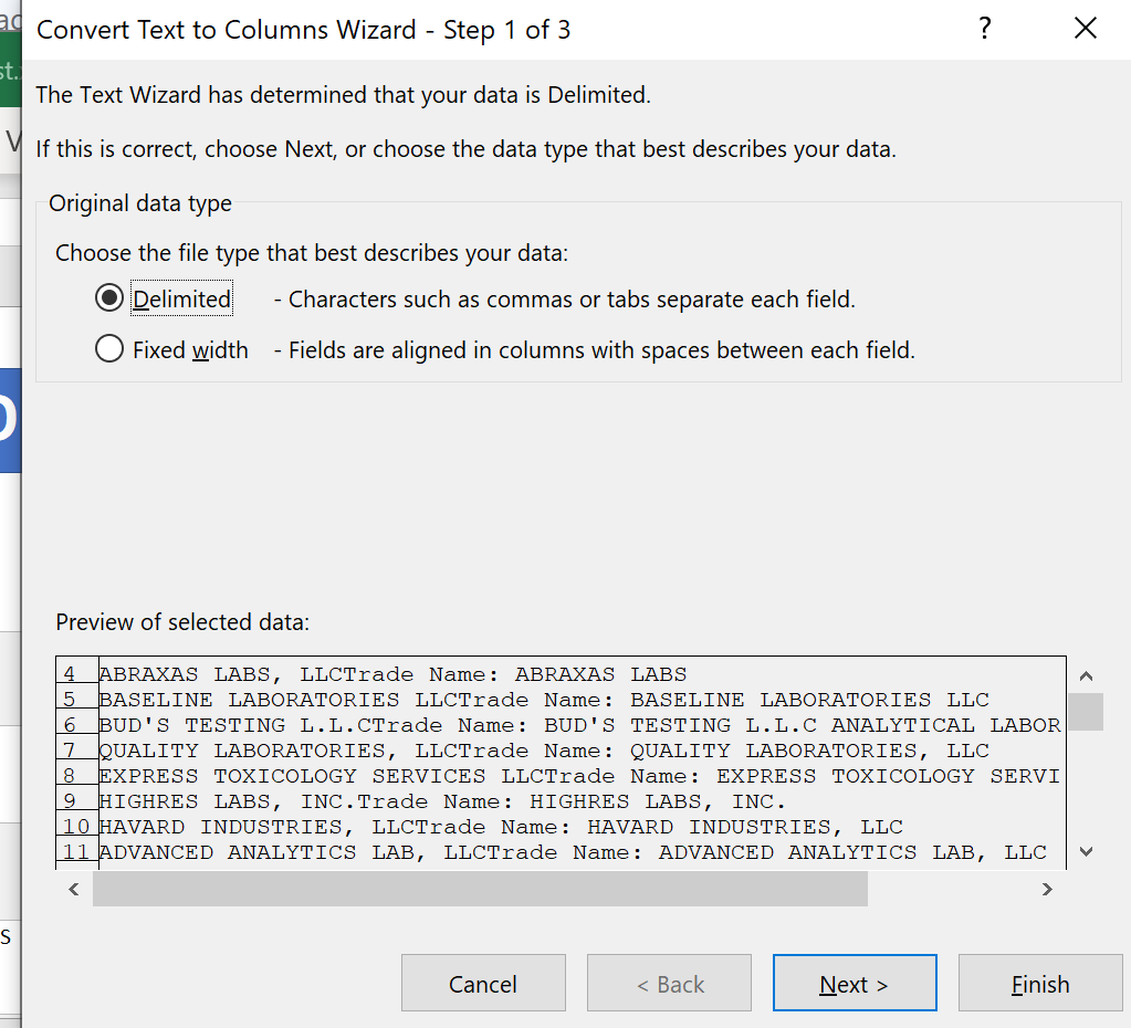 Help separating text into columns in Excel delimiter isn't working properly. Any advice? Thank you!