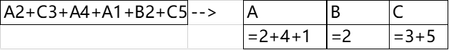 I want to sum the numbers of the same types (A, B, C) within a cell.