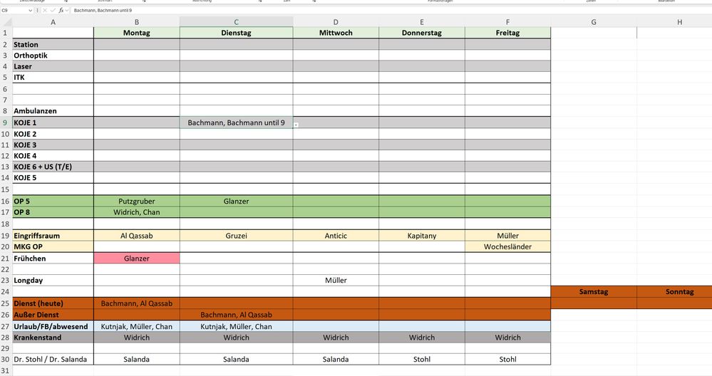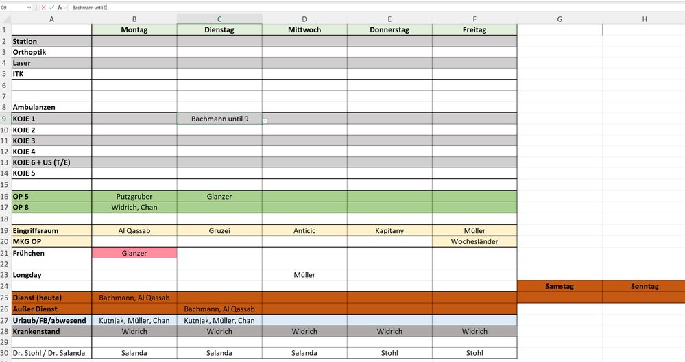 However, the issue arises when "Bachmann" is already in the cell (first picture), and I manually type something like "Bachmann until 10 o'clock". Once I press Enter, the text is added again, resulting in something like the last picture: "Bachmann, Bachmann until 10 o'clock".