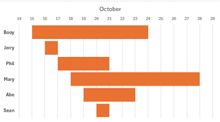 It would look for the charts and figure out the timeline and add them to a row with the timeframe: example is Booy 15-0ct-25 to 23-oct-25 the char would go to the next one and add his information, I hope someone can help me. I just need it to populate the month tracker, Thanks