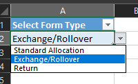 = LET( tableIndices, SWITCH(formType, "Standard", {2,3,4}, "Exchange", {5,8}, "Return", {1,6,7,9}), CHOOSECOLS(table, tableIndices) )This formula would return a dynamic array.