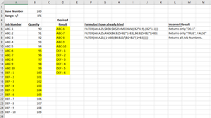 Hello Microsoft Excel Community, I'm having trouble making a filter formula work. Perhaps someone can help me out. I'm trying to filter a list of job numbers if the quantity is +/- 5% from th...