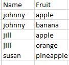 GroupNames = Table.Group(Source, {"Name"}, {"Fruit", each [Fruit]}),