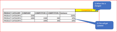 1) If the highlighted cell changed the variance column will get updated for all rows in that variance column.