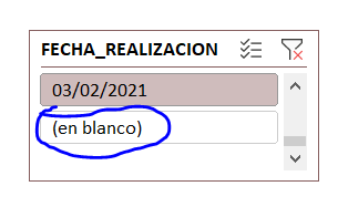 Regarding 1: Avoid rows with blank cells, especially in date columns as it disturbs Excel's time and date calculation capabilities. You can't hide (en blanco) from that view if you have blanks in the column.
