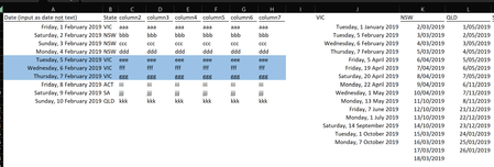 Greetings everyone, I'm trying to highlight cells in columns A:H if they fall on public holiday dates mentioned in the cells J2:L18. Now what if the public holidays differ according to different st...