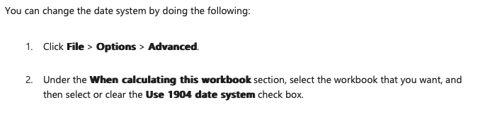 Though, changing the data system will shift all dates in your file by 4 years. If you don't have real dates in this particular workbooks that may not be a problem then.