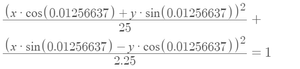 This is a equation for ellipse that I made I'd like to get a coordinate of points on this ellipse x coordinate starts from -4.9 and increase by 0.1 How can I get y coordinate and make x a...